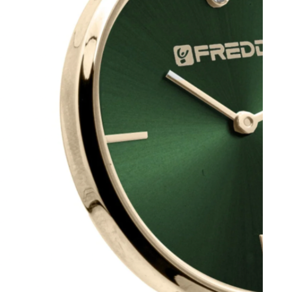 Il Freddy Lady FW-029 incarna lo spirito elegante delle donne dall’animo eccentrico. Cassa circolare da 33 mm in acciaio, design posh, dalle linee pulite e minimaliste. Cinturino in maglia d’acciaio e chiusura a clip. Il quadrante è cangiante, con una pietra swarowski al vertice, lancette ed indici in metallo.